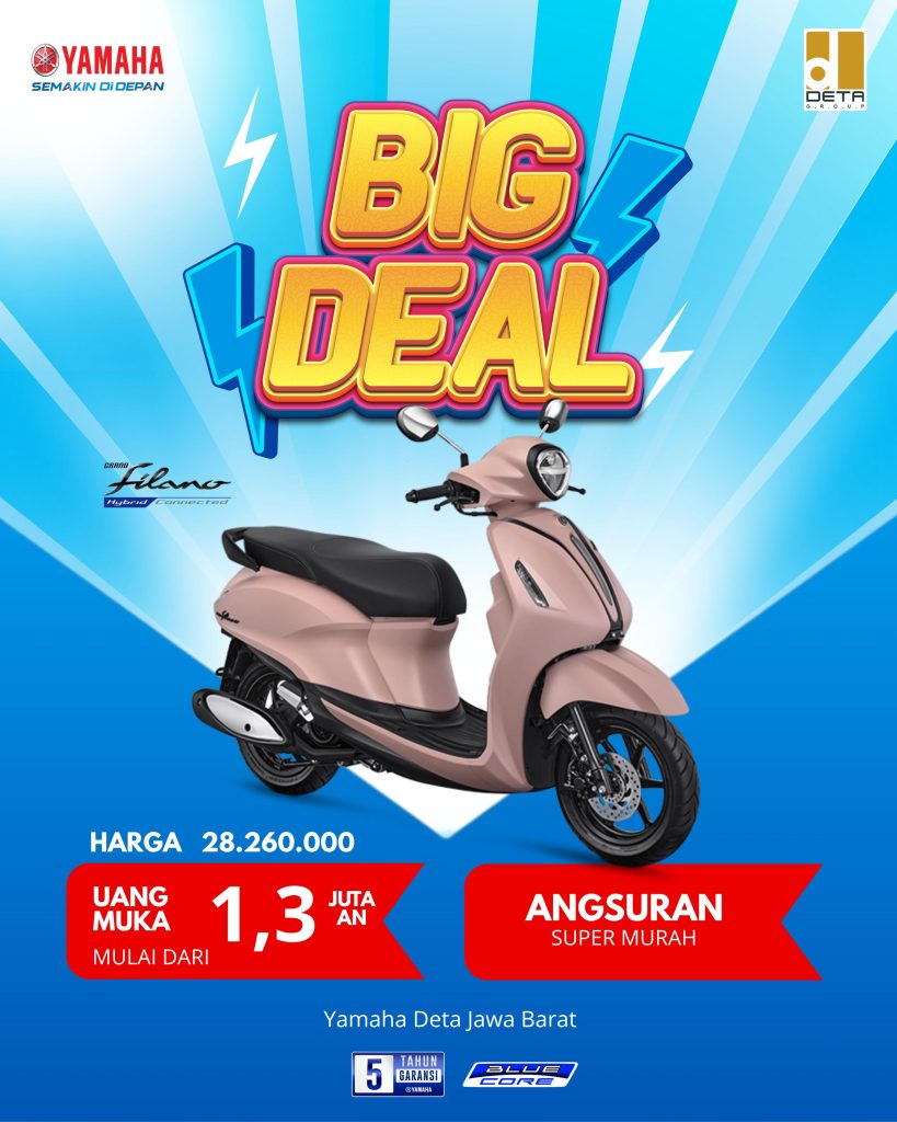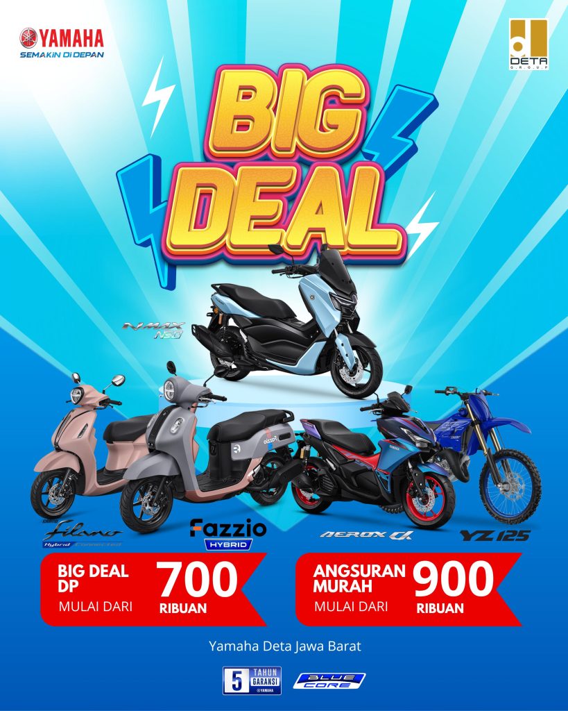 Yamaha Deta Indramayu Official (Deta Group) adalah salah satu dealer resmi Yamaha Indonesia terbesar dan terpercaya di wilayah Jawa Barat. Melayani seluruh area dengan komitmen memberikan kemudahan dalam pembelian sepeda motor Yamaha secara online melalui situs resmi kami. Temukan berbagai pilihan produk unggulan dan promo menarik yang tersedia untuk setiap unit.
